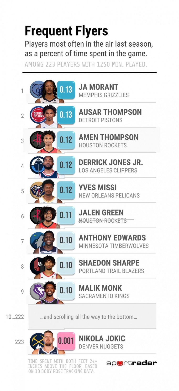 掘金中锋约基奇滞空时间0.001%,稳居倒数第一!